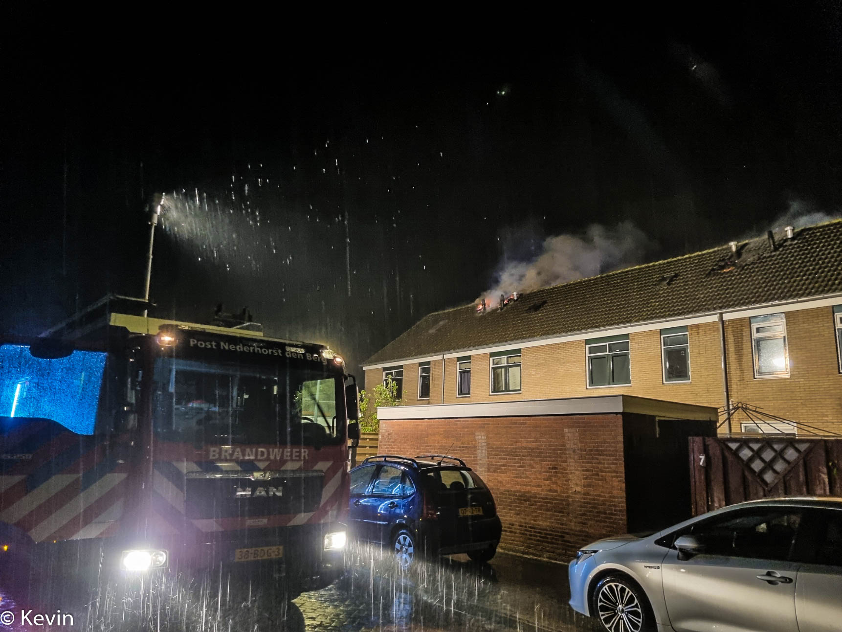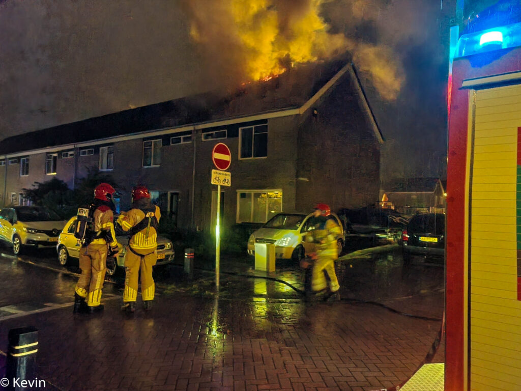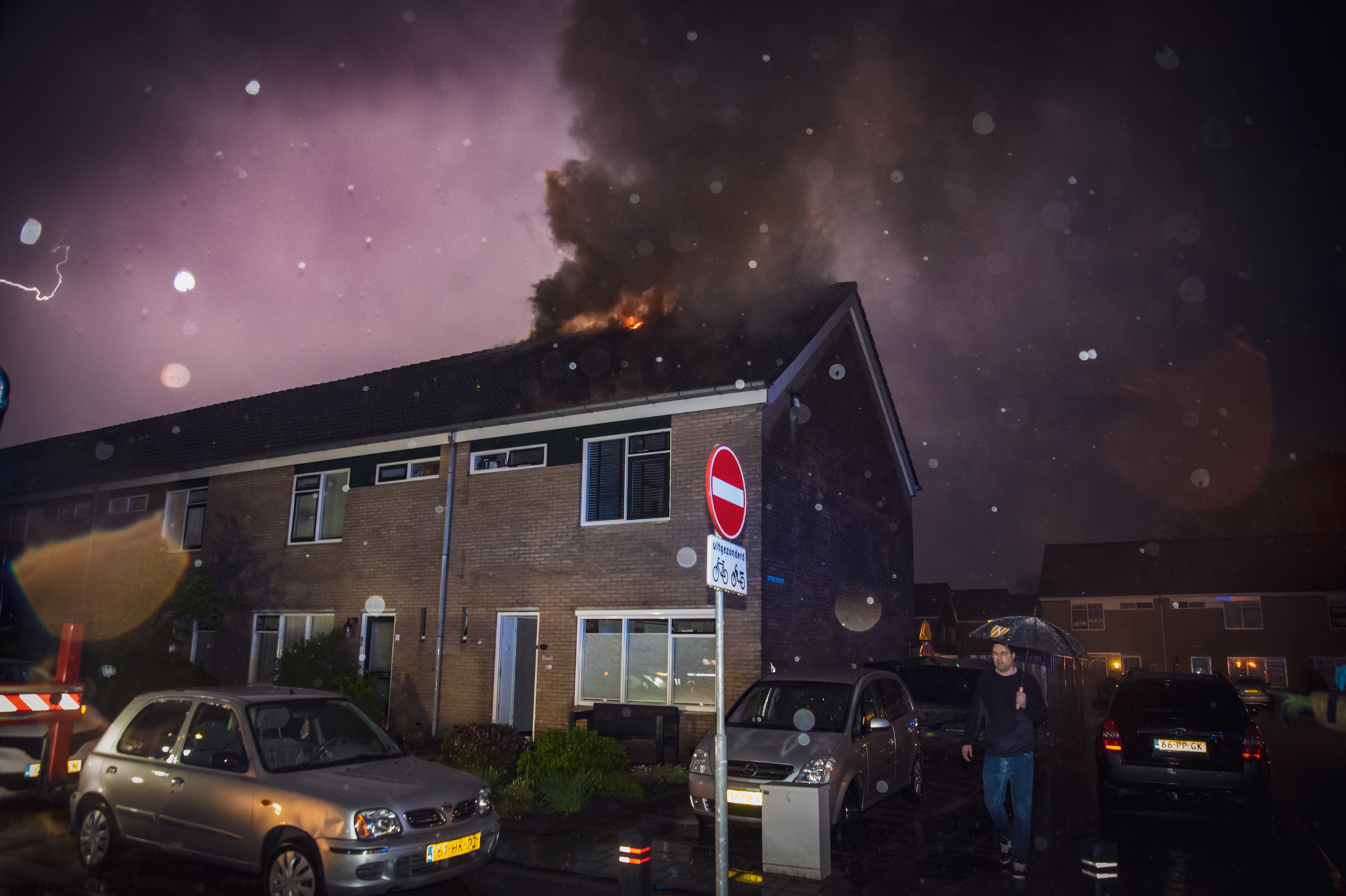 Vannacht rond 03:00 ging het even flink te keer in ons dorp. Bij een blikseminslag op de Wethouder Bloklaan vloog bij 2 woningen tegelijk het dak in brand. Aangenomen werd dat ook de tussengelegen woning op zolder brand had. Vreemd genoeg was dit niet het geval. Volgens een buurtbewoner zou er na de blikseminslag een soort vuurbal over het dak gerold zijn wat dit fenomeen zou kunnen verklaren. We hebben samen met Brandweer Post ‘s-Graveland en hoogwerker post Hilversum en overige hulpdiensten (zoals RAV Gooi en Vechtstreek en politie) hard gewerkt in de stromende regen en kregen de brand gelukkig vrij snel onder controle. 1 woning is zwaar beschadigd. 1 woning is redelijk zwaar beschadigd en 2 woningen hebben rook en/of waterschade. Gelukkig zijn er geen slachtoffers gevallen. Wel zijn een aantal personen zijn nagekeken ivm rooninhalatie.