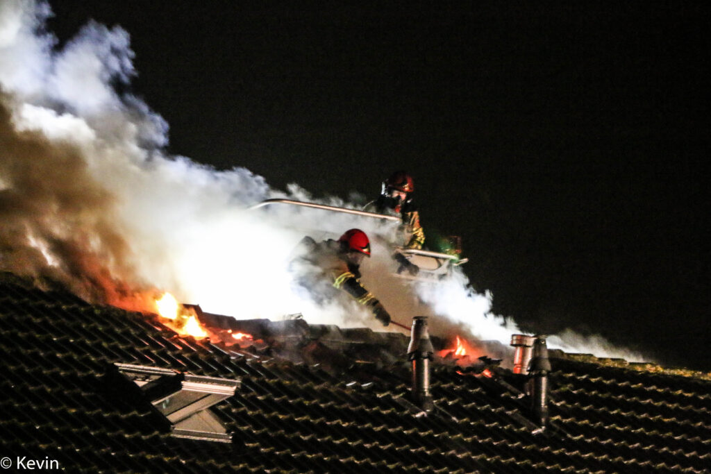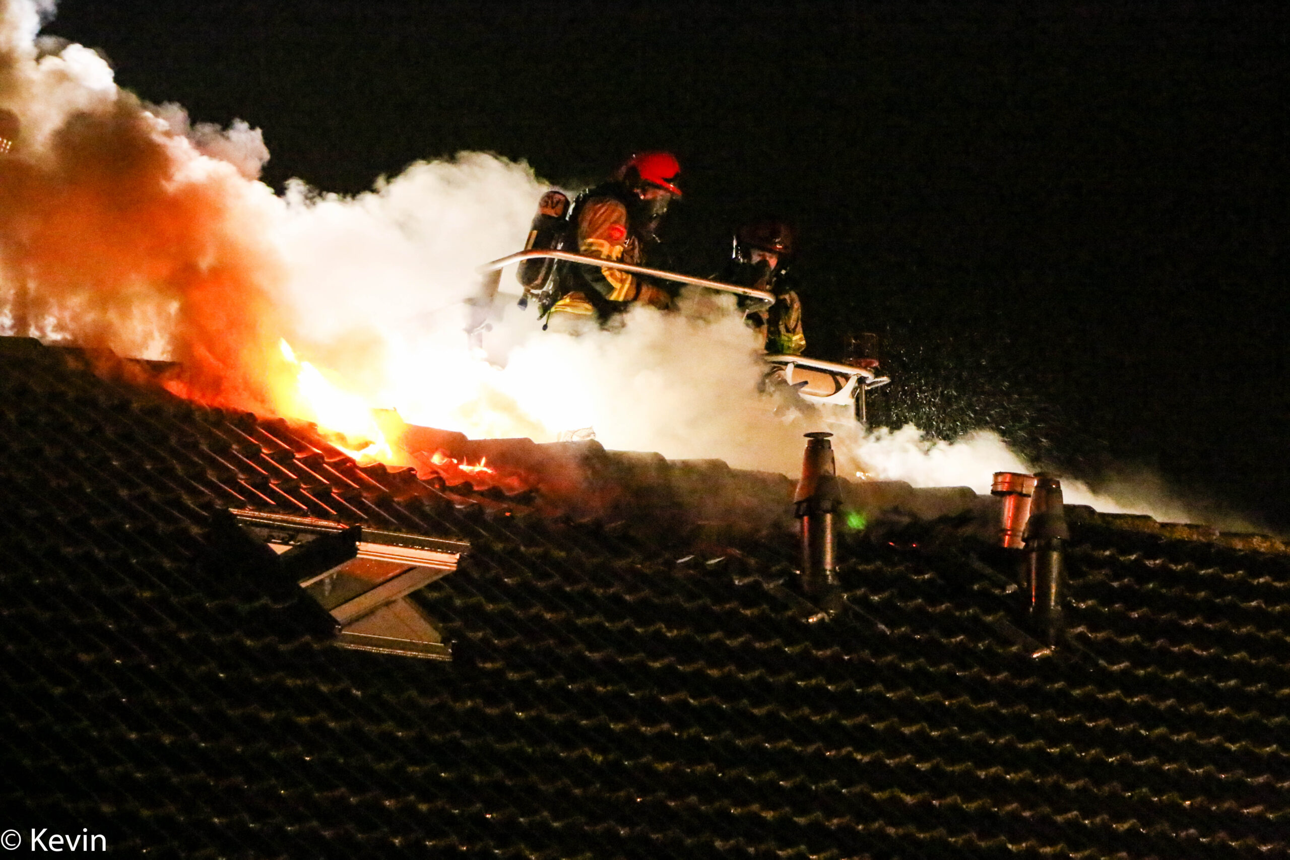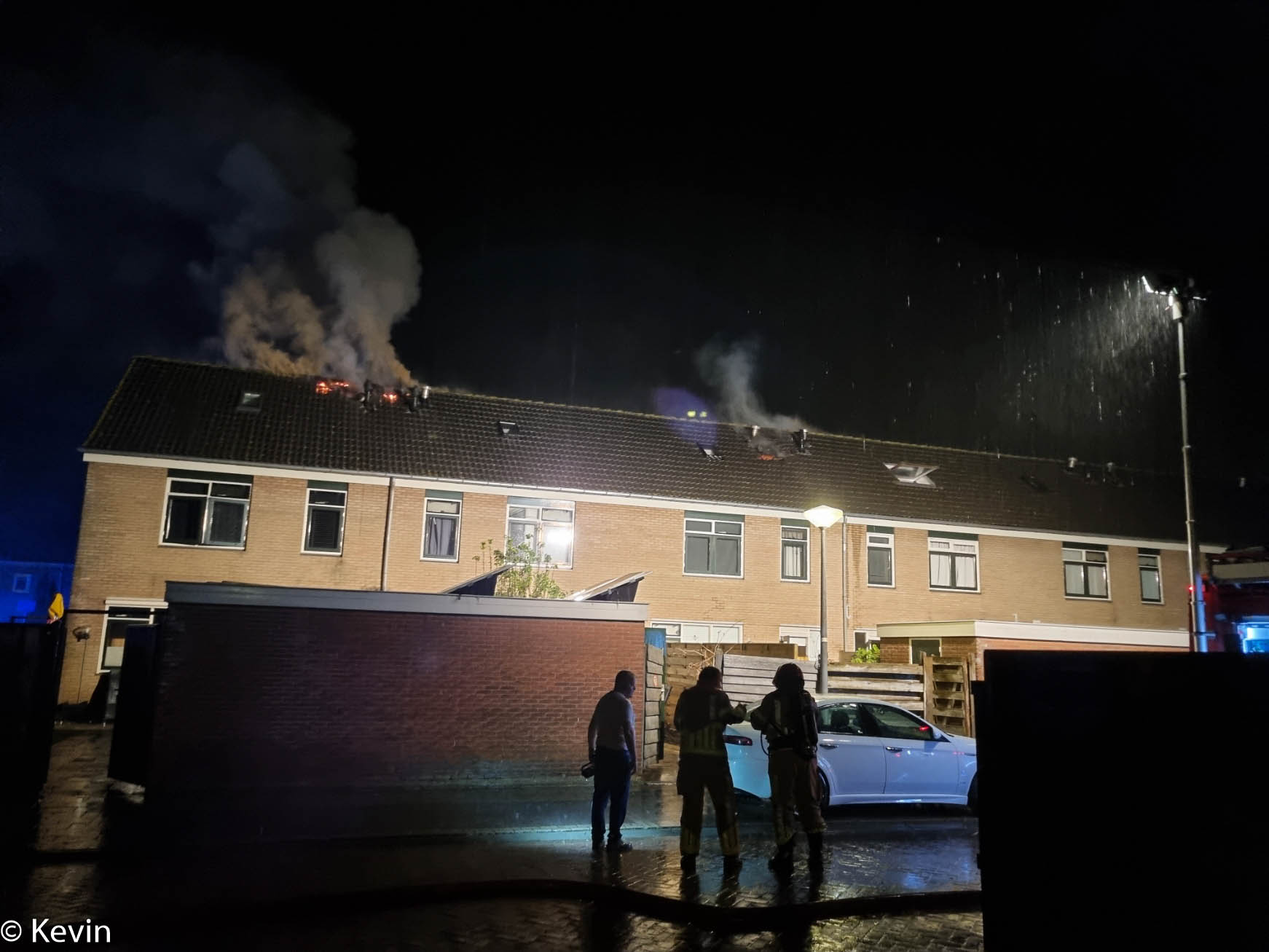 Vannacht rond 03:00 ging het even flink te keer in ons dorp. Bij een blikseminslag op de Wethouder Bloklaan vloog bij 2 woningen tegelijk het dak in brand. Aangenomen werd dat ook de tussengelegen woning op zolder brand had. Vreemd genoeg was dit niet het geval. Volgens een buurtbewoner zou er na de blikseminslag een soort vuurbal over het dak gerold zijn wat dit fenomeen zou kunnen verklaren. We hebben samen met Brandweer Post ‘s-Graveland en hoogwerker post Hilversum en overige hulpdiensten (zoals RAV Gooi en Vechtstreek en politie) hard gewerkt in de stromende regen en kregen de brand gelukkig vrij snel onder controle. 1 woning is zwaar beschadigd. 1 woning is redelijk zwaar beschadigd en 2 woningen hebben rook en/of waterschade. Gelukkig zijn er geen slachtoffers gevallen. Wel zijn een aantal personen zijn nagekeken ivm rooninhalatie.