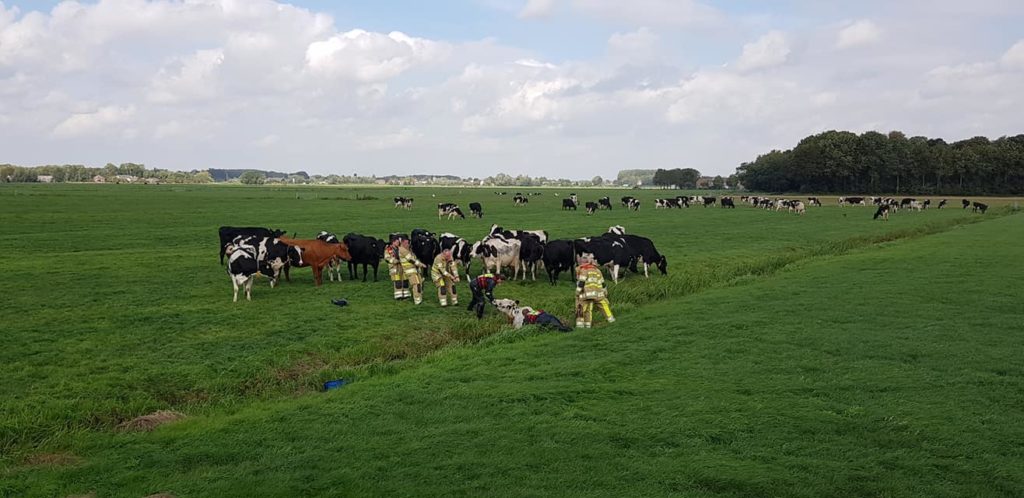 Woensdagmiddag zijn wij opgeroepen voor een Dier in nood langs de Kaai (Tussen slotlaan en Eilandseweg). Ter plaatsen bleek een koe verkoeling te zoeken in de sloot. Na enkele pogingen zonder medewerking van de koe is het gelukt om het dier weer op het droge te krijgen.