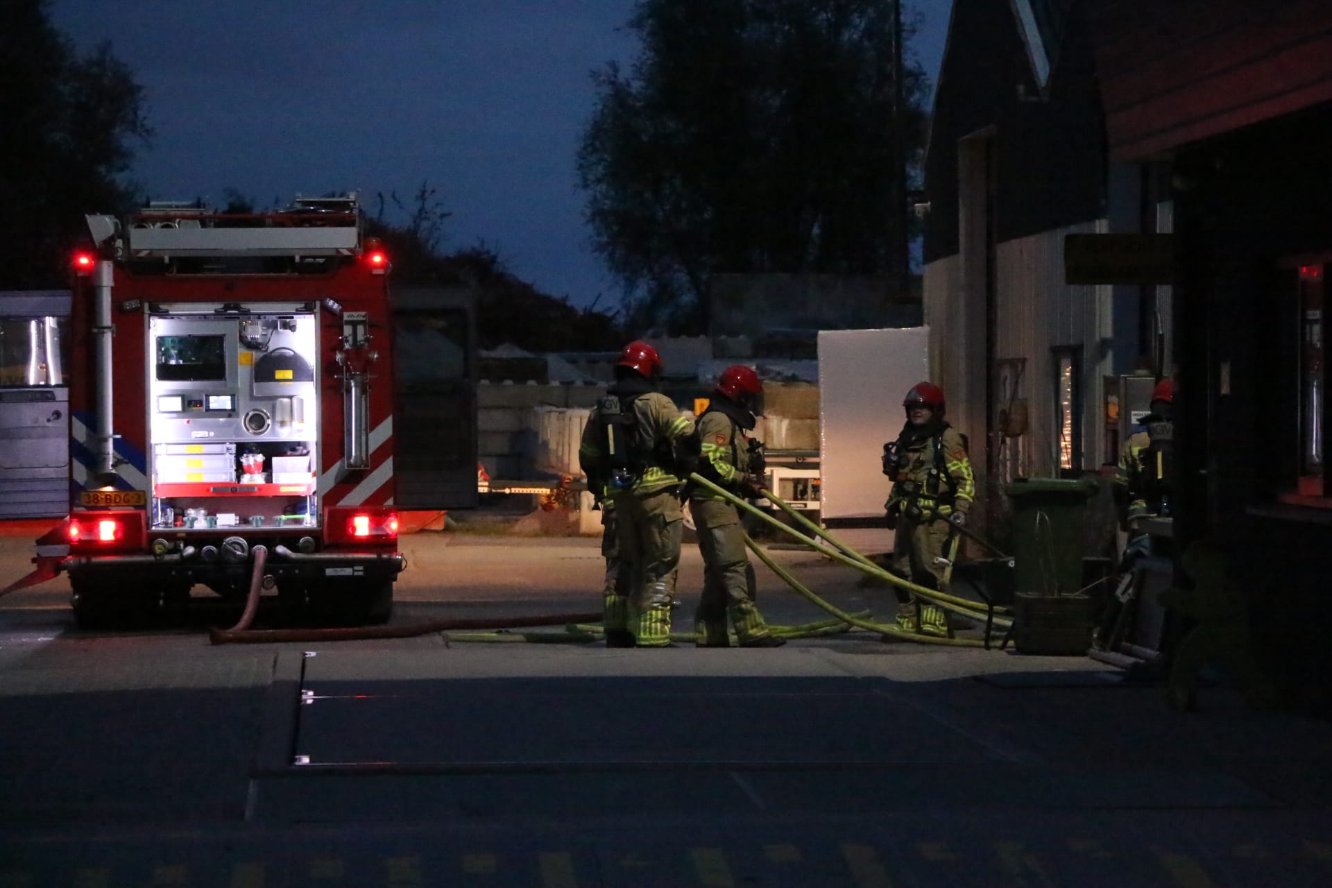 Aanwezig personeel had reeds de stroomvoorziening uitgeschakeld waarna de rookontwikkeling af nam. De accu’s bleven echter roken en knetteren en in overleg/samenwerking met het bedrijf hebben we de heftruck buiten gezet in een bult zand en de accu’s los gekoppeld. Na ventilatie was het bedrijf ook weer vrij van schadelijke rookgassen.