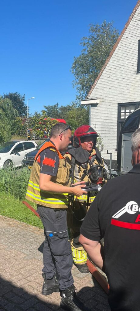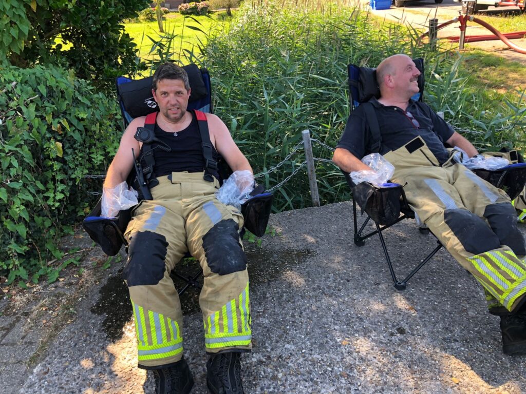 Daarnaast willen we aandacht besteden aan de foto van de heren in de stoel. Sinds enkele tijd bezit de regio zogeheten rehab stoelen om te gebruiken bij het risico op hittestuwing. Hier kunnen collega’s afkoelen. Gezien de drukkende warmte vanmiddag zijn deze stoelen uit voorzorg gebruikt. Hier worden o.a. je armen gekoeld middels water. In de tussentijd wisselen extra opgeroepen manschap in roulatie elkaar af zodat ook de incidentbestrijding doorgaat.